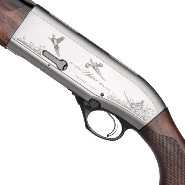 The Beretta J40AN18 A400 Upland KO is a beautiful and technologically advanced 12-gauge semi-automatic shotgun designed for upland game hunting. This model features an elegant, engraved nickel-plated receiver with classic game scenes, paired with a premium walnut stock and a 28-inch Steelium barrel. A key feature is the innovative Kick-Off Plus recoil reduction system integrated into the wood stock, which significantly tames felt recoil by up to 50% for a much more comfortable shooting experience. Utilizing Beretta’s fast and reliable Blink gas-operated system, the A400 Upland offers quick cycling and high performance, making it a great blend of classic aesthetic and modern engineering