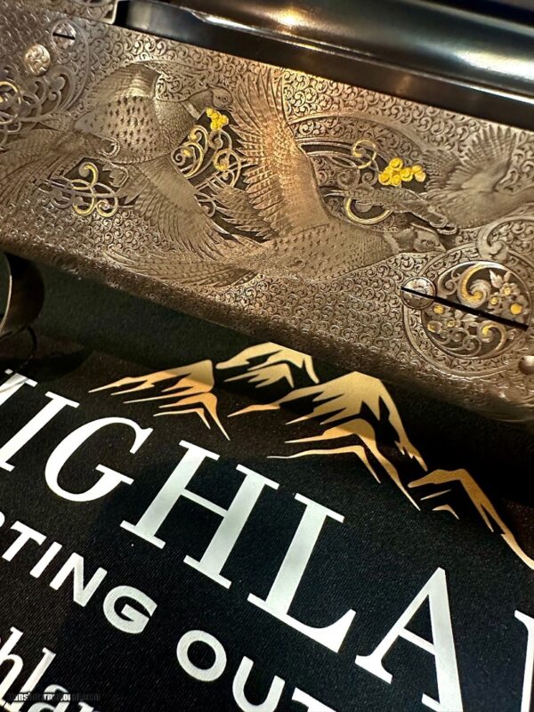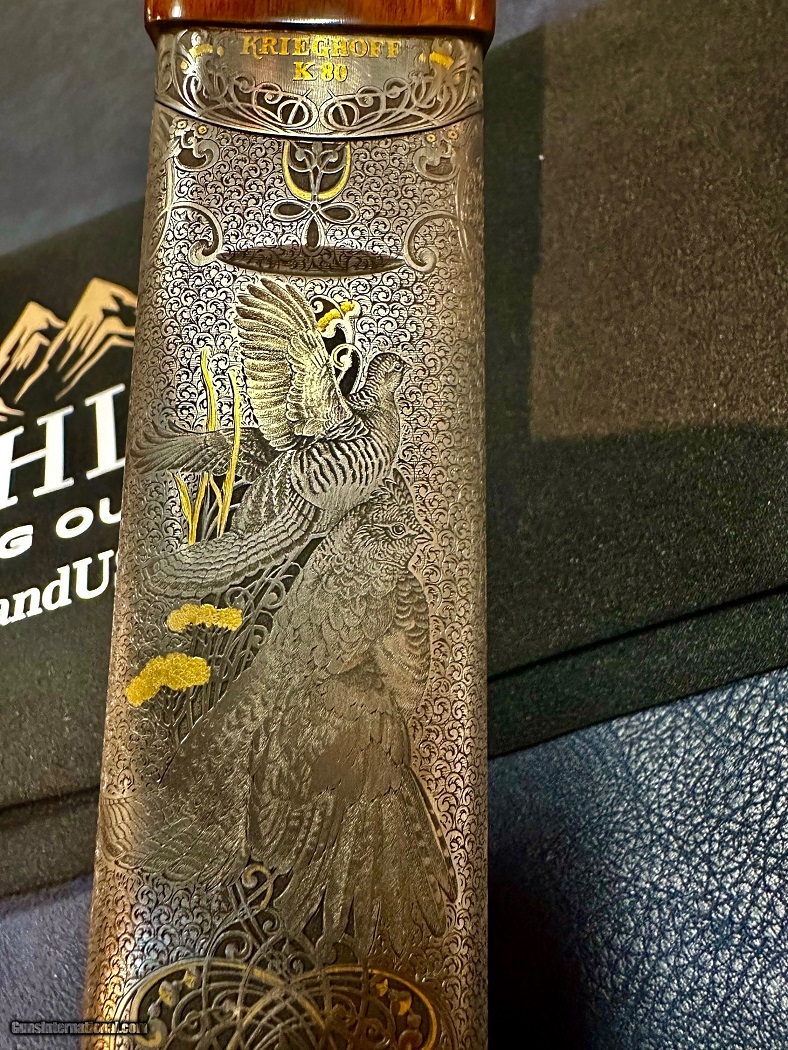 A rare opportunity to own a one of a kind Creative Art Italia Custom K80 Bulino Engraved. Pre owned by a well known collector this mint condition work of art is ready to be used. HighlandUSA is a premier Krieghoff Dealer located in Hunt Valley Md. full one year warranty/ gun fitting / try the K80 in our simulator lounge. We can configure any barrel type. 30″/  32″/  Parcours / flat / step. The Highland Custom shop makes stocks / pads / combs / refinishing/ annual service.